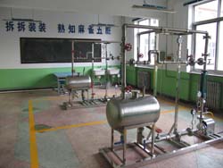 是我?;I(yè)的重點實訓室。有兩套四位一體管路拆裝裝置(sw-cz)。通過管路拆裝:熟悉現場主要設備、儀表的工作原理及使用方法。了解閥門的種類、構造原理與維護。掌握法蘭、螺紋連接及各種管件類型,根據圖紙進行一般的配管及管路連接。培養(yǎng)協(xié)作的精神,以小組為單位,進行管路的組裝、試壓、沖洗及拆除操作,系統(tǒng)的試運行及停車操作。