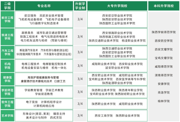 職教升學(xué)部各院系專業(yè)對(duì)口升學(xué)院校