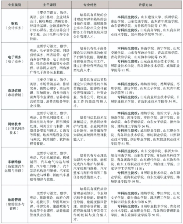 說明:以上職教高考含濰坊坊華科技中等職業(yè)學(xué)校委托培養(yǎng)的四個(gè)專業(yè)。