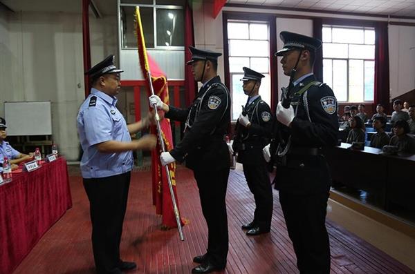 2018年8月23日下午16:00,山東東營(yíng)金盾司法學(xué)校2018級(jí)新生軍訓(xùn)動(dòng)員大會(huì)暨授旗儀式在校報(bào)告廳隆重舉行。學(xué)校黨支部書記、校長(zhǎng)楊萬(wàn)里,常務(wù)副校長(zhǎng)劉寶存,副校長(zhǎng)李長(zhǎng)峰,副校長(zhǎng)史廣國(guó),學(xué)生處大隊(duì)長(zhǎng)王永強(qiáng),團(tuán)委代理書記袁德良等領(lǐng)導(dǎo)出席大會(huì)。大會(huì)由史廣國(guó)副校長(zhǎng)主持。