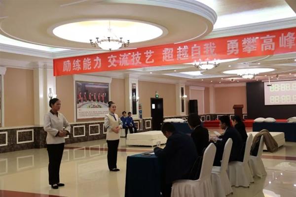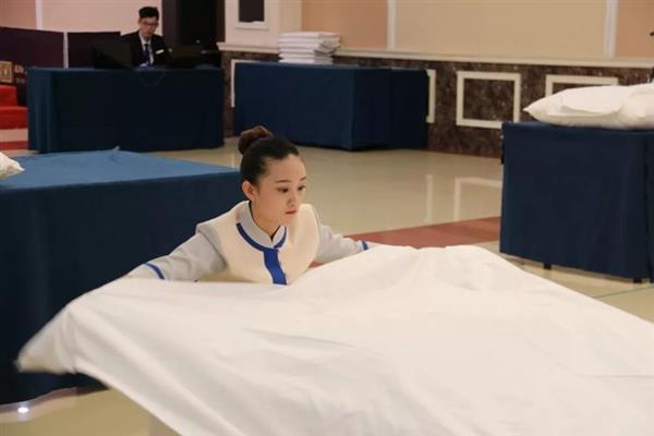 比賽內(nèi)容分為專業(yè)理論測(cè)試、專業(yè)英語口試、現(xiàn)場(chǎng)操作三部分?,F(xiàn)場(chǎng)操作比賽中,選手們端莊、大方的儀容儀表與優(yōu)美的行姿體態(tài)展示出了旅游酒店行業(yè)人員的形象風(fēng)采。中餐宴會(huì)擺臺(tái)與服務(wù)、客房中式鋪床技能比賽中,選手們沉著冷靜,用熟練、規(guī)范的操作流程,充分展現(xiàn)出嫻熟的專業(yè)技能性,極具觀賞性,給人以美的享受。