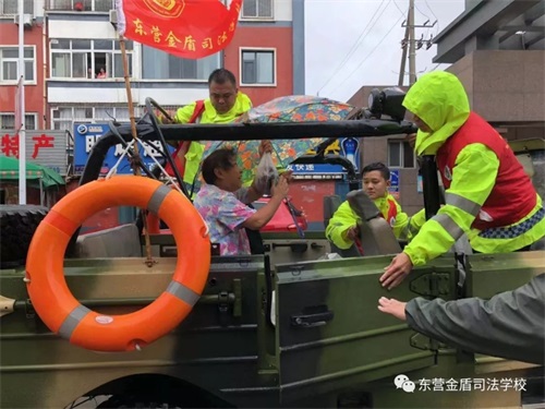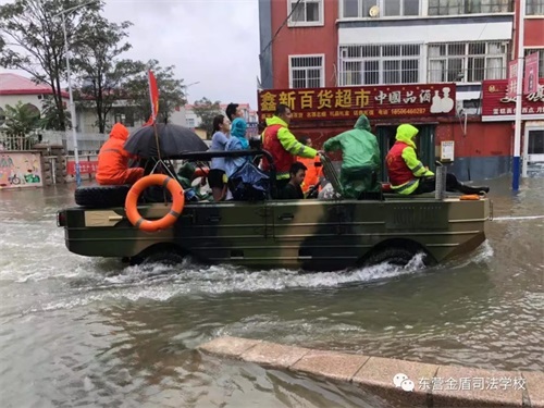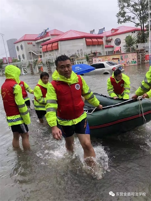 8月11日,在第9號臺風“利奇馬”的影響下,東營已經歷了長達一天一夜的暴雨侵襲,部分主干路及居民小區(qū)都被積水浸泡,有居民被困家中,暴雨的肆虐嚴重威脅了人們的生命和財產安全。東營金盾司法學校參與救援。
