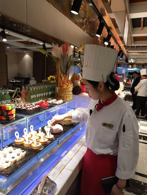 就這樣,經(jīng)過(guò)日復(fù)一日的努力,我在2010年晉升為自助餐西點(diǎn)廚師長(zhǎng)。然而只有20歲出頭的我,遇到了各種意想不到的困難,我一度束手無(wú)策。部門(mén)總監(jiān)告訴我,要想得到大家的信賴(lài)和尊重,必須要有過(guò)硬的業(yè)務(wù)技能和擔(dān)當(dāng)。于是我在工作中苦鉆業(yè)務(wù),做事以身作則,做人知禮明禮,視員工為家人。我努力讓自己成為曾是員工時(shí)自己心中期望的廚師長(zhǎng)的樣子,學(xué)習(xí)著酒店優(yōu)秀管理人員的管理方法。功夫不負(fù)有心人,我所帶領(lǐng)的班組人員穩(wěn)定,團(tuán)隊(duì)氛圍積極向上,我終于可以勝任廚師長(zhǎng)的崗位了。