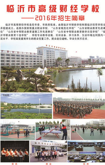臨沂高級(jí)財(cái)經(jīng)學(xué)校是在臨沂市財(cái)政學(xué)校、臨沂經(jīng)貿(mào)學(xué)校整合的基礎(chǔ)上,由市委、市政府正式批準(zhǔn)成立的國(guó)辦學(xué)校,系國(guó)家級(jí)重點(diǎn)中等專業(yè)學(xué)校,臨沂市財(cái)政局直屬正縣級(jí)事業(yè)單位,山東省會(huì)計(jì)從業(yè)資格考試指定考點(diǎn)。多年來(lái)為全省財(cái)稅系統(tǒng)和企事業(yè)單位輸送了大批骨干人才,被譽(yù)為“沂蒙財(cái)會(huì)人才的搖籃”。我校是全市十佳職業(yè)學(xué)校、平安臨沂建設(shè)先進(jìn)單位、山東省德育工作先進(jìn)集體單位。 臨沂高級(jí)財(cái)經(jīng)學(xué)校歷來(lái)重視學(xué)生專業(yè)基本技能的培養(yǎng),多次參加省、市專業(yè)技能大賽,所獲成績(jī)?cè)谌?、全市?dú)占鰲頭。我校極為重視畢業(yè)生的就業(yè)安置工作,已與臨沂各大銀行、保險(xiǎn)公司、移動(dòng)、聯(lián)通、煙草、新華書(shū)店..