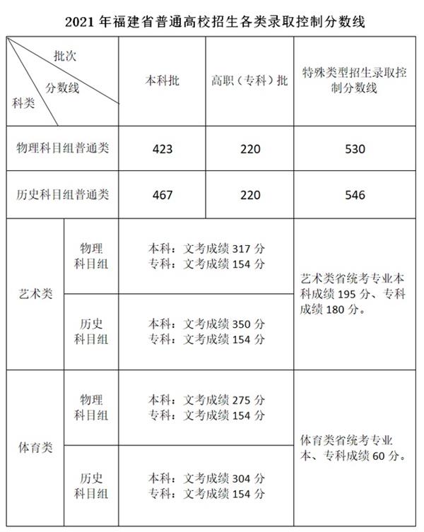 福建省教育考試院剛剛公布 2021年福建省普通高校招生錄取控制分數(shù)線