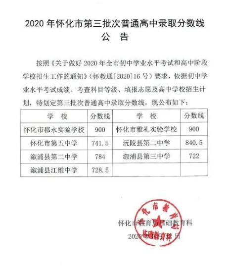 剛剛,懷化市教育局公布了本市中考第三批次錄取分數(shù)線,其中郡永實驗中學(xué)和雅禮實驗中學(xué)均為900分,具體情況如下: