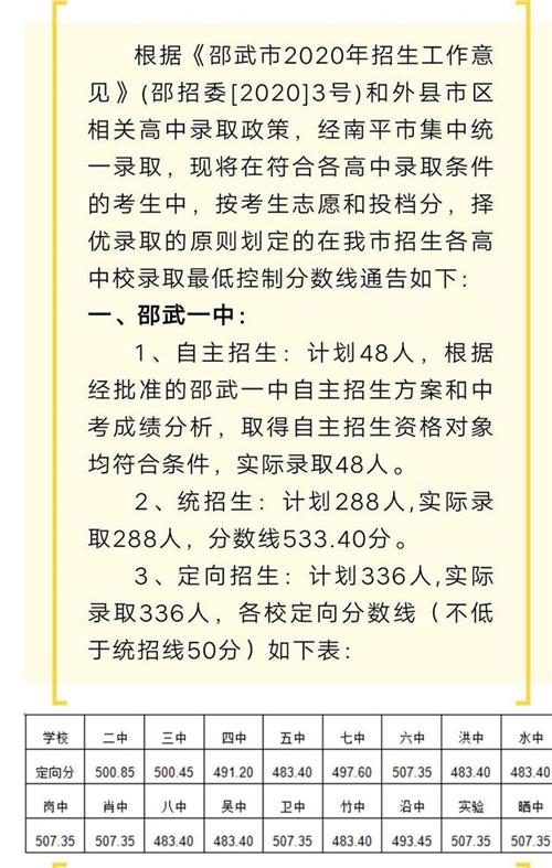 12日上午,邵武市教育局發(fā)布了本市中考錄取分數(shù)線,其中邵武一中統(tǒng)招分數(shù)線為533.4分,具體情況如下: