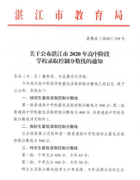 2020年廣東湛江中考錄取分?jǐn)?shù)線(已公布)