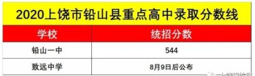 2020年江西上饒中考鉛山縣重點(diǎn)高中錄取分?jǐn)?shù)線