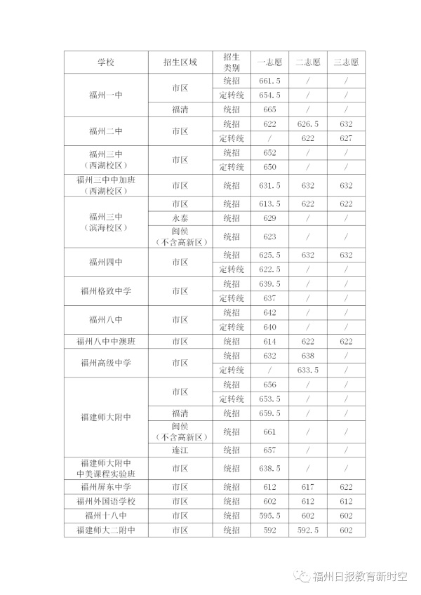 2020年福建福州中考普高學(xué)校最低錄取分?jǐn)?shù)線公布