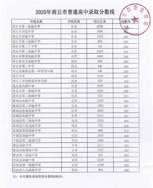 2021年河南省商丘市中考錄取分數線暫未公布,小編為大家整理了2020年分數線作為參考。2021年分數線將在官方公布后進行更新,請大家持續(xù)關注。 2020年