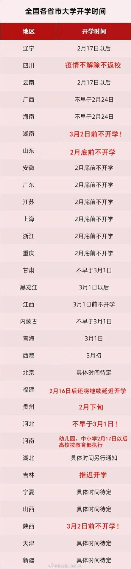 #教育部回應(yīng)高考是否推遲# #教育部通知延期開(kāi)學(xué)# 山東,河南,湖南,陜西……31省市最新開(kāi)學(xué)時(shí)間匯總,你啥時(shí)候開(kāi)學(xué)?