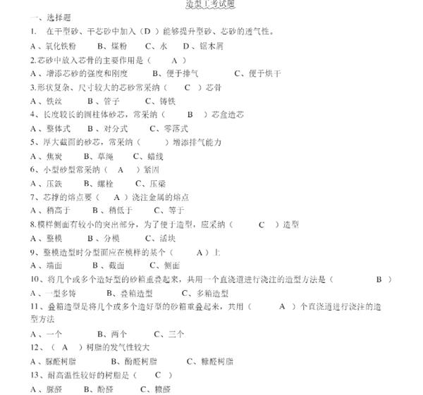 • 造型工試題