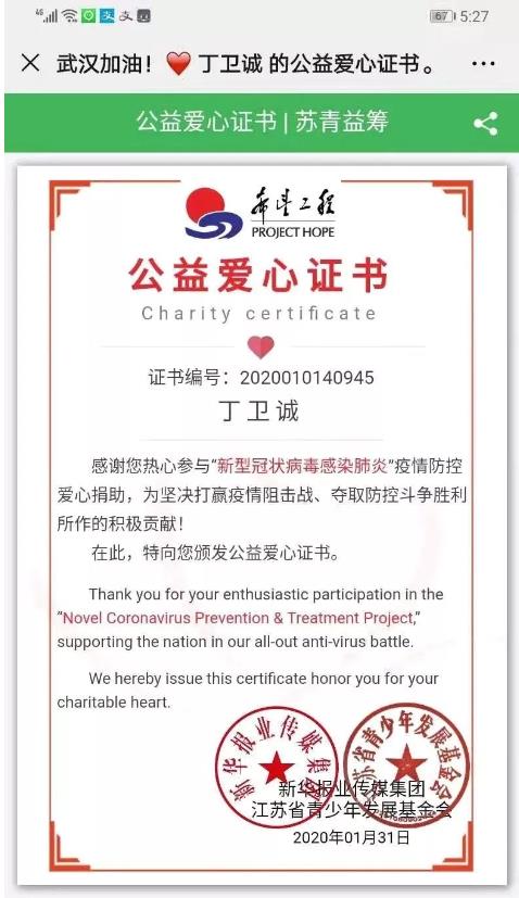 19護(hù)理丁衛(wèi)誠(chéng)積極響應(yīng)號(hào)召,捐出了自己的零花錢(qián),為抗擊疫情奉獻(xiàn)了自己應(yīng)有的力量。