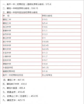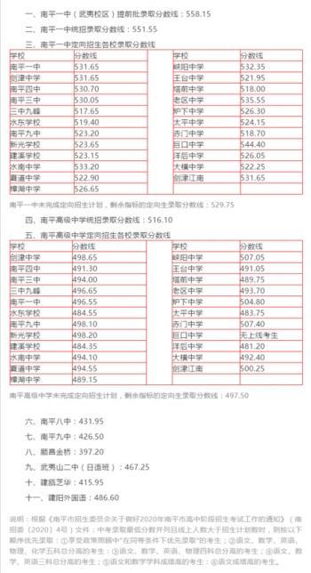 根據(jù)《南平市招生委員會(huì)關(guān)于做好2020年南平市高中階段招生考試工作的通知》(南招委〔2020〕4號(hào))和各地2020年高中階段招生錄取工作實(shí)施方案等文件要求,現(xiàn)將2020年各縣(市、區(qū))普通高中錄取最低錄取控制分?jǐn)?shù)線通告如下。