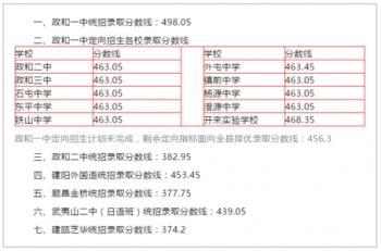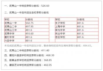 2020年武夷山市高中錄取最低控制分?jǐn)?shù)線