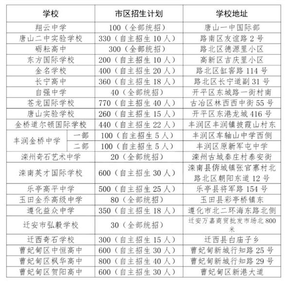 第一批:公辦唐山一中、開灤二中,民辦翔云中學(xué)、礪耘高中;唐山幼兒師范高等??茖W(xué)校(簡稱“唐山幼?!?,下同)、唐山師范學(xué)院玉田分校(簡稱“玉師”,下同)
