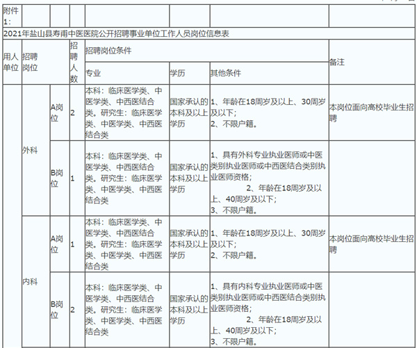 附件1.《2021年鹽山縣壽甫中醫(yī)醫(yī)院公開招聘事業(yè)單位工作人員崗位信息表》