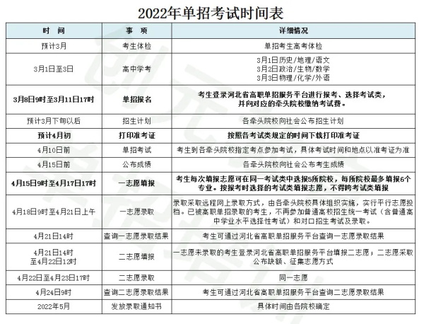 2022年單招考試時(shí)間表